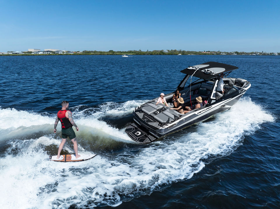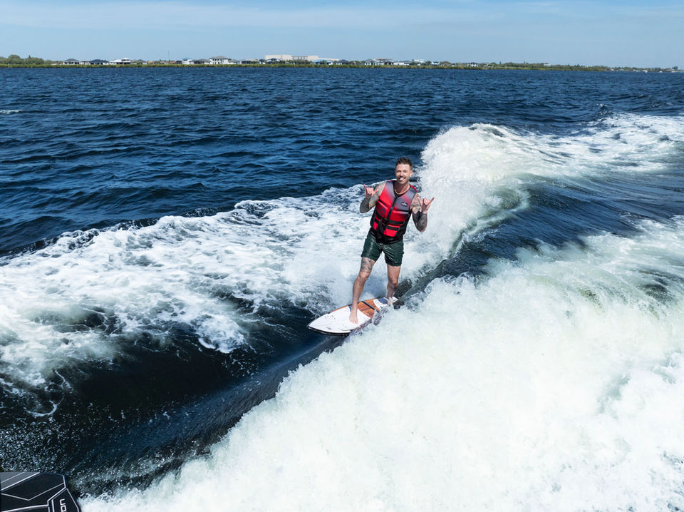 on board our 2023 Centurion Ri265 along side an experienced captain and first mate. You'll have your choice of surfboards as well as all optional and necessary safety equipment. We provide ice, bottled water and different sizes of equipment to accommodate everyone on board. You might even encounter a glimpse of manatees and dolphins native to the Gulf Coast.